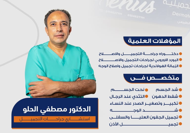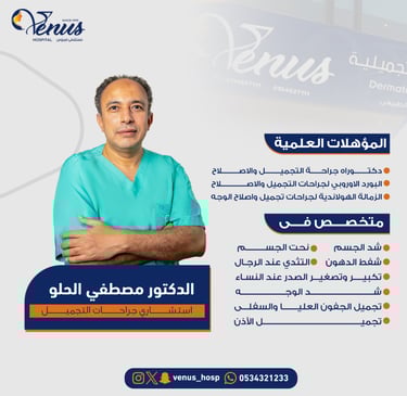 تعرفوا على خدمات الدكتور مصطفى الحلو في مستشفى فينوس الطبي لجراحات التجميل.